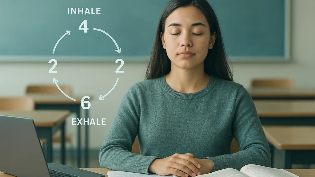 Box breathing or 4-4-4-4 counts can stabilize the voice in performance contexts. The longer exhale (e.g., 6–8 counts) also helps reduce arousal. Practice these before class to normalize the physical response.