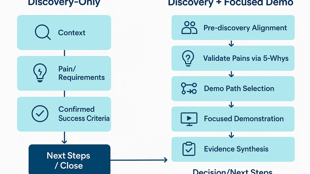 Key Takeaway: A well-structured discovery presentation structure inoculates the process against drift, ensuring you either land a targeted demo or a crisp next-step decision.