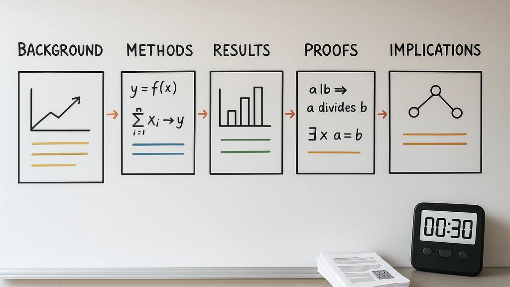 Захист PhD у форматі chalk talk замінює слайди на точну, обмежену за часом розповідь на дошці. Ви перетворюєте фігури з вашої дисертації на позначені дошки, заздалегідь готуєте роздаткові матеріали або QR-коди та репетируєте сценарій з доведенням, який подаєте за допомогою документ-камери та виразної роботи на білої дошці. Якщо проектор зламається, ви переходите до наративного, дошково-орієнтованого захисту, дотримуючись темпу за таймером і чіткого «плану дошки». Основна думка: добре темпований захист PhD у форматі chalk talk спирається на послідовність дошок, відпрацьований таймінг і підготовлені роздаткові матеріали замість слайдів.