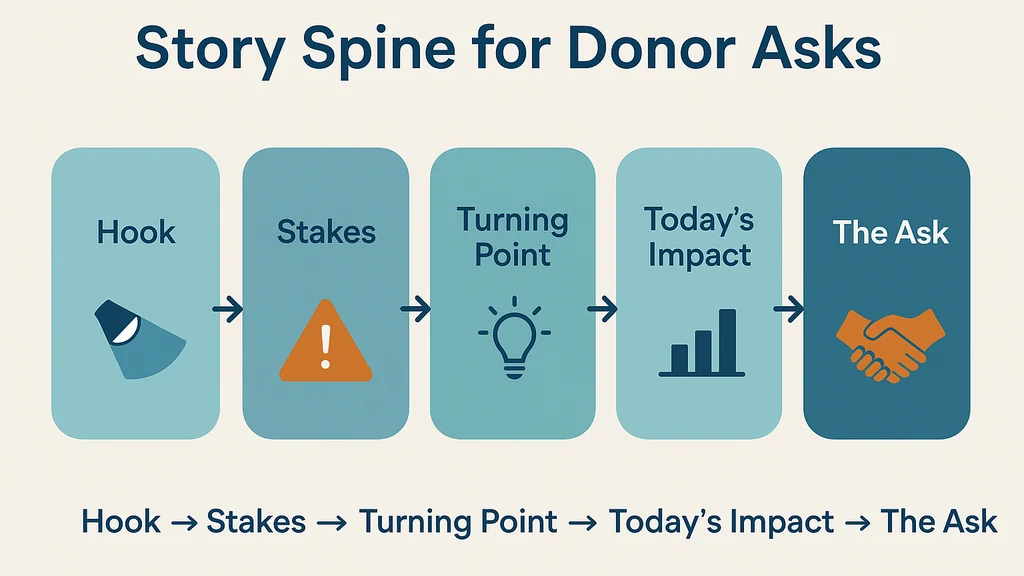 Mình là Samir Patel, và tôi đã chứng kiến các hội đồng và nhà gây quỹ xử lý câu chuyện cá nhân từ hai phía của micrô. Ý tưởng cốt lõi ở đây không phải giả vờ dũng cảm hay giả vờ cảm xúc không quan trọng; mà là dàn dựng sự dễ tổn thương một cách có chủ đích để người đóng góp thấy được trái tim của sứ mệnh bạn và sự khác biệt cụ thể mà những đóng góp của họ mang lại. Dưới đây là một chu trình chuẩn bị thực tiễn kéo dài 20 phút được xây dựng quanh “Story Spine cho các yêu cầu” (Cột sống câu chuyện cho các yêu cầu), cùng với các công cụ bạn có thể diễn tập, thích nghi và trình bày cho dù bạn ở Zoom hay trong phòng.